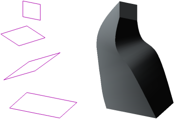 The Lofted element is formed by connecting several sections of arbitrary shape and location. The figure shows an example of a lofted element.