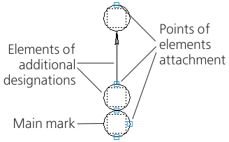 After pressing the button, a phantom of an additional element will appear in the graphic region. Places of possible attachment of additional designations are marked by points