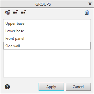 Managing object groups is performed in the dialog (see Figure), invoked by running the Drafting — Groups... command. The command is available if there are selected objects or earlier created groups in the document.