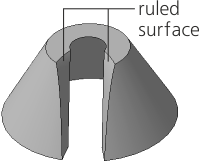 When the gap is placed on a flat portion, the joint edges are flat (Fig. a). On a non-flat portion, the joint edges can be both flat (Fig. b) and ruled (Fig. c).