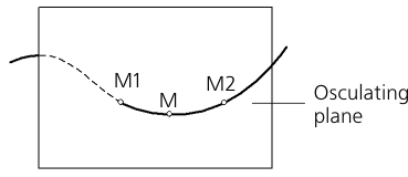 A contacting plane is a plane striving to take the position of a plane passing through three points of a curve M, M1, M2, provided that points M1 and M2 are striving towards point M (see the figure).