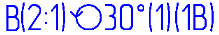 From the detailing object, the literal designation is passed into the view caption – B and position of the view arrow in the drawing – on sheet 1 in zone 1B. The scale 2:1 and the rotation angle 30° are passed into the caption from the parameters of the view itself. Besides, since the view is rotated, the "rotated" signage is added. As a result, we obtain a view caption: