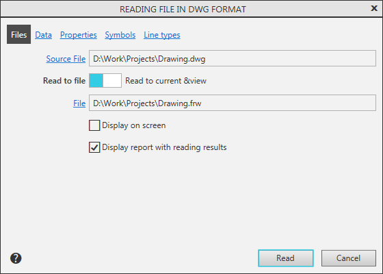 4.Select the required import option: Read into graphic document or Read into model.