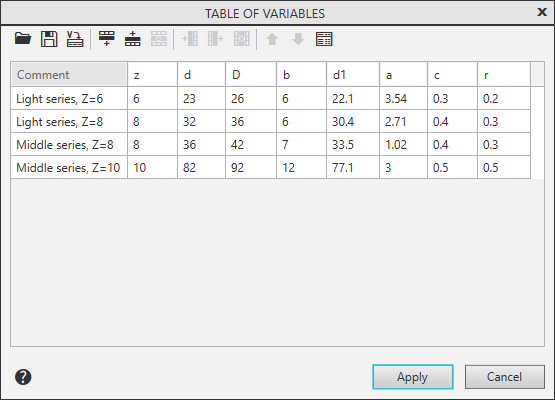 Editing a table of variables is almost similar to its creation. To begin editing, open the Table of variables dialog by clicking the Table of variables
