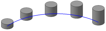Example of changing array instances dimensions for an array by curve is given on the figure. The copied object is a bumping operation. A new extrusion distance value is specified for each copy of the operation.