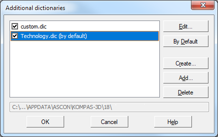 The contents of language dictionaries are pre-defined and cannot be changed by means of KOMPAS-3D.