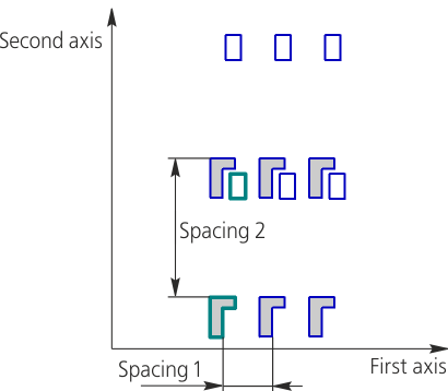 Examples of relative placement of instances are given on the figures. An array by grid is used as a sample array – its instances are marked with light gray color. Copied instance of the array being created is shown in dark gray color. Instance of the sample array, relative to which instances of the array being created are placed, is indicated with thick line.