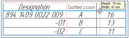 The sizes of cells are changed with the mouse and are displayed near the cursor at the precision of 1 mm. To move the border with higher precision, enter the required size in the cell format setup dialog (see section Formatting cells).