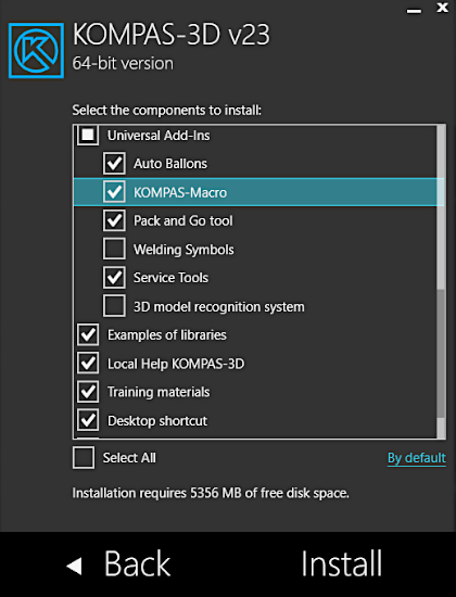 To install the KOMPAS-Macro Add-On, select this component in the KOMPAS setup window (see Figure).