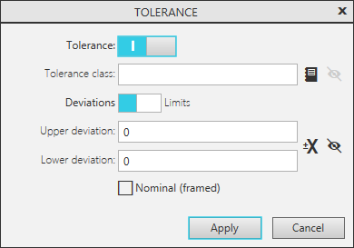 Clear all the fields of the dialog and click Apply button. A general tolerance is assigned if in the general tolerances setup dialog the option Use general tolerances according to ISO 2768-1 (GOST 30893.1) is enabled (see section General tolerances). |