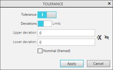 Assignment or change of a tolerance to the dimension of sketch or to the value of operation parameter is performed in the Tolerance dialog.
