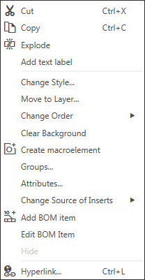 The convenience of working with context menus and panels is provided by grouping commands that are frequently used in different sections of the Main Menu in one place. In addition, invoking of commands is accelerated since the context menu appears on the screen in that place where it was invoked by a mouse click, and the context bar – near the cursor.