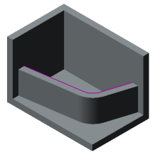 The rib is perpendicular to the sketch plane of the rib. The rib shape is determined by the sketch line and the lines of intersection of the sketch extrusion surface with the faces of the solid. |