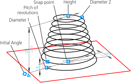To change the value of any parameter, drag the corresponding characteristic point. To do this, move the cursor to the required point. After the point is selected and a title with the name and value of the parameter (or expression to calculate the value of the parameter) appears next to the point, press and hold down the left mouse button while dragging the mouse. The selected characteristic point will move following the cursor. The value of the corresponding parameter will be changed and displayed in the title next to the cursor, and a phantom of the object will be rebuilt dynamically. When the required value is obtained, release the mouse button.