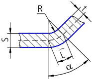 R is the inner bend radius;
