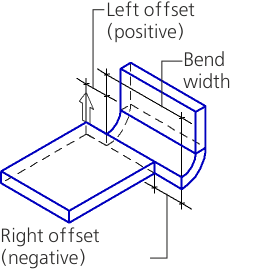 The bend width and indentation value are set in the Left Indentation and Width fields. The bend is positioned so that the distance from the left end of the edge to the left side of the bend would be equal to the specified indentation value. |