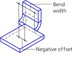 In the Left-side view, Right-side view, and Two Indentations methods, the indentation values can be both positive and negative. The positive indentation is plotted inward in relation to the sheet solid, and the negative indentation – outward. Indentation values when the bend width is negative or zero, as well as values when the bend appears to be separated from the sheet solid are not allowed. |