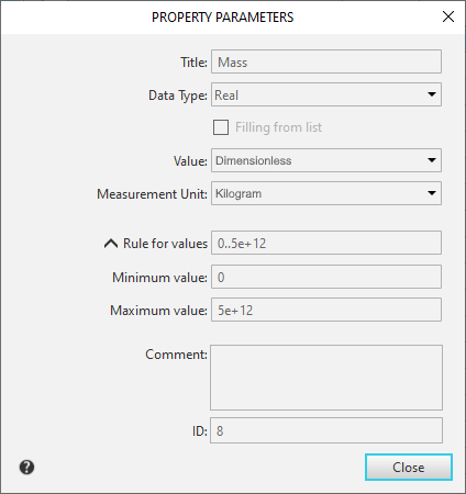 . button. A dialogue Property parameters.In viewing mode, property editing is not available.