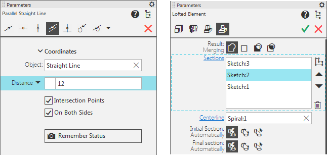 When performing many of commands it is required to specify an object that serves as the basis for construction. The specified object will be registered in the Parameter Panel. Its name will appear in the special field. If you need to specify multiple objects to perform the command, then the Parameter Panel displays a list to specify the objects as base ones.