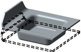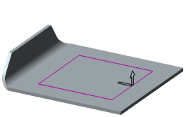 Fixed side is a portion of the base face the position of which will not change when you build a die form. The fixed portion of the face can be located inside or outside the die form profile. In the graphics area, a phantom arrow showing the construction direction starts in this portion of the face.