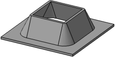 An open pressing with sloped side walls and filleted lateral edges: