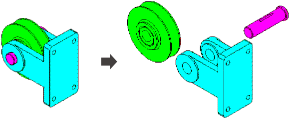 Sometimes the assembly needs to be viewed in the exploded form (so that all its components are visible). There is a special assembly display mode for this purpose — the exploded view.