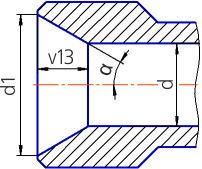 Sketch of a cut-out extrusion element – a circle of diameter d1. The element forms the conical part of a hole. Diameter of the cylindrical part of a hole — d (see Figure b).