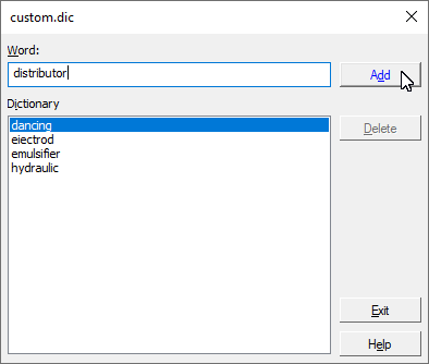 •to edit a word, enter it into the Word: field, then press the Add button,
