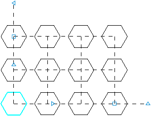 During the building of the array, you can change the parameters of the grid by moving its characteristic points. The characteristic points of the array have different purposes and different shapes.