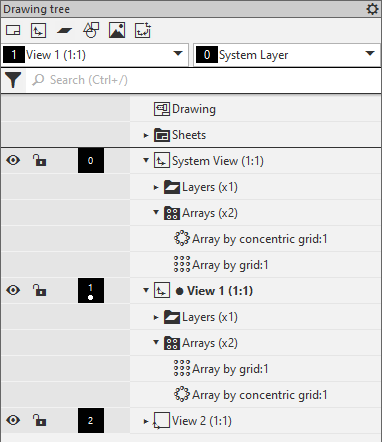 In the Graphic document tree, arrays are combined into Arrays (xN) N groups.In the group name is a number indicating the number of arrays in this group.