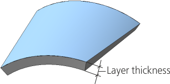 In the process of building a model, you can thicken the edges of the solid or surface. As a result of the operation, a layer is formed, which is the space filled by the material between the original and equidistant surfaces or two equidistant surfaces (on both sides of the original). An example of thickening of a face to the surface is shown in the figure.