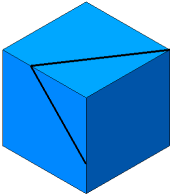 In the case of a faceted trimmed surface, the trimming boundary is also considered fully defined if the sectioning object does not intersect all of it, but one or more faces, and the extreme points of the intersection line lie on the edges of these faces. In this case, the edges or parts of the edges are included in the trimming boundary. An example of such boundary is shown in the figure. Here, the trimmed object is a three-faced surface, and the sectioning object is a broken line whose segments lie on its edges.