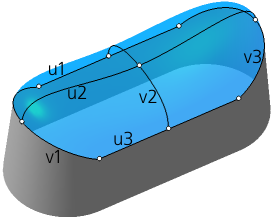 u1, u2, u3 are curves of the direction U; v1, v2, v3 are curves of the direction V.