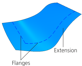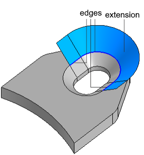 The edges of surfaces and/or bodies with broken integrity can be extended beyond the specified edges — open edges. Surface extension is accomplished by changing the position of specified edges or by creating new faces adjacent to the specified edges. Faces are extended beyond the specified edges by a specified length or to a specified point object. The user can choose whether the extension will be a part of the original surface or a new surface. When choosing the latter, the extension can be performed on faces of a surface or solid adjacent to an edge (or chain of edges) that is not open.