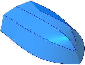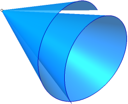 Ruled surface by two curves is formed by the movement of a segment in space along two guiding lines in such a way that the base vertex of the segment belongs to one guiding curve, and the ending vertex belongs to the other one. Guiding curves can be curves, edges, chains of edges, contours, and so on. It is possible to design a ruled surface where one of the guiding lines is a point. Examples of ruled surfaces by two curves are shown on the picture below. Guiding curves are highlighted using thick lines while the guiding point is shown using a circle.