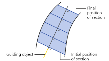 With the method of moving the section Along the line, the position of the section plane is defined by a guiding line. At the starting position of the section, its plane is perpendicular to the guiding line. When the section moves, the plane rotates so that it remains perpendicular to this line.