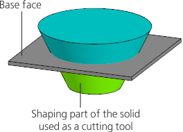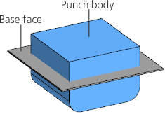 Construction direction is the direction opposite the base face. The shape of the stamping is determined by the forming part of the solid used as tool body.