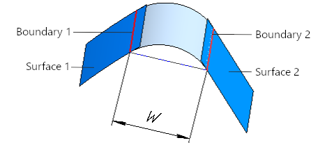 The position of the fillet surface boundaries, essentially its width, is user-defined. To select the method of setting the rounding surface width, use elements of the Width group in the Rounding section of the Parameter Panel. The following methods are available.