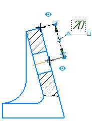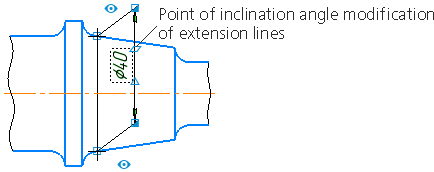 allow altering the position of extension lines of the dimension and the position of the vertex of the angle for the angular dimension. If the dimension text is located on landing, the points of this type are displayed at the beginning of the leader and at the end of the landing. Use them to move the leader and rotate the landing.
