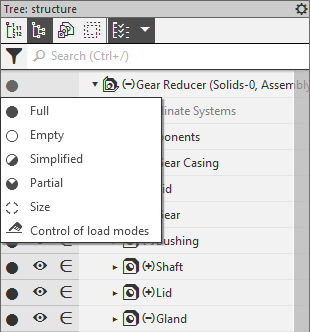 •For components, it is possible to change the load mode either to the Full type or to a less detailed one in relation to the applied one (load modes in the order of decreasing detail — Full, Partial, Simplified, Size, Empty).