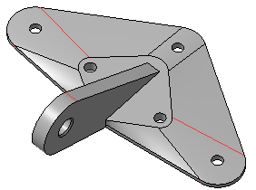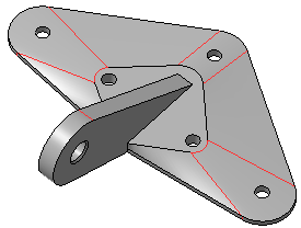 A smooth edge is considered to be a common curve of adjacent faces that are tangent to each other, provided that the specified criterion is satisfied. Such a criterion is the angular tolerance between the tangent faces at the points of the curve; it is defined by the user during the setup. An edge is considered as smooth if the specified angular tolerance is not exceeded. The angle tolerance can vary from 0 to 5 degrees. The greater the value of the angular tolerance, the more smooth edges can be defined in the model, see the figure below (smooth edges are displayed in red).