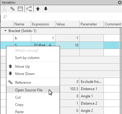 To quickly open the source file of a reference, use the Open Source File command from the context menu of the reference variable (see the figure below). The command is available only for the variable that gets a value by reference. |