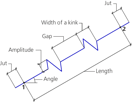 In the document, a line with bends jutting outside the initial and final points by a jut value will be created.