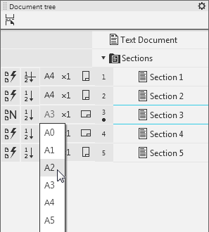 button in the Tree Panel header opens a menu with setup commands. The list of commands depends on the document type.