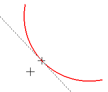 By moving the cursor, select the desired tangent direction and select a point on the object. If a point is specified outside the object, then the position of the starting point is determined by the projection of the specified point on the object.