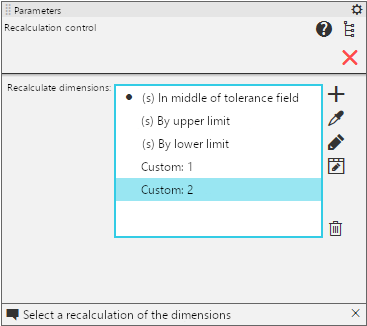 After invoking the command, the recalculation parameters appear on the Parameter panel.