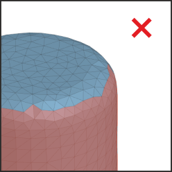 The selected surface area should be close in shape to the surface that will be used for approximation. It is not recommended to add transition areas from one surface to another to the selected area, for example, fillets (see the picture).