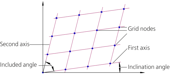 •the slope angle of the first axis of the grid to the X axis of the current coordinate system in the Slope field;