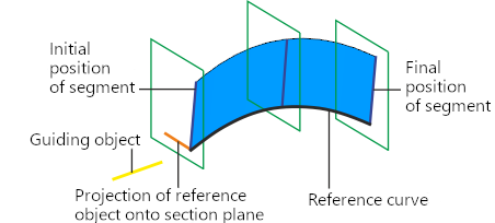 The object to define the section plane orientation should be selected in such a way that this plane intersects with the reference curve. The angle between the section plane and the object used to define the segment position in the section can not be 90°. Otherwise it's impossible to create a linear surface. |