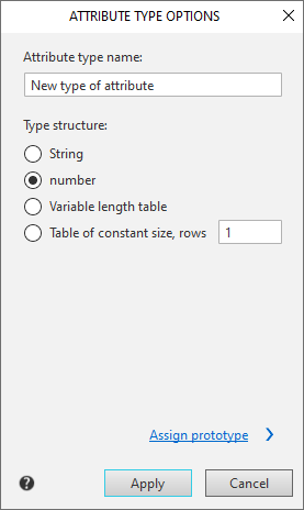 This completes creation of string or numeric attribute: an icon corresponding to the structure of created attribute type appears in attribute type handling dialog alongside with attribute name.